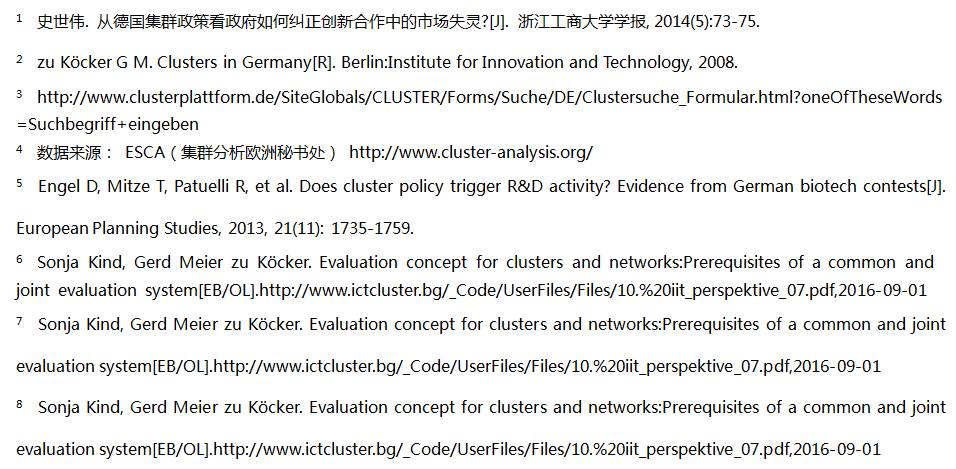 注:根據《ClustersinGermany》與德國集群信息平臺的相關資料整理