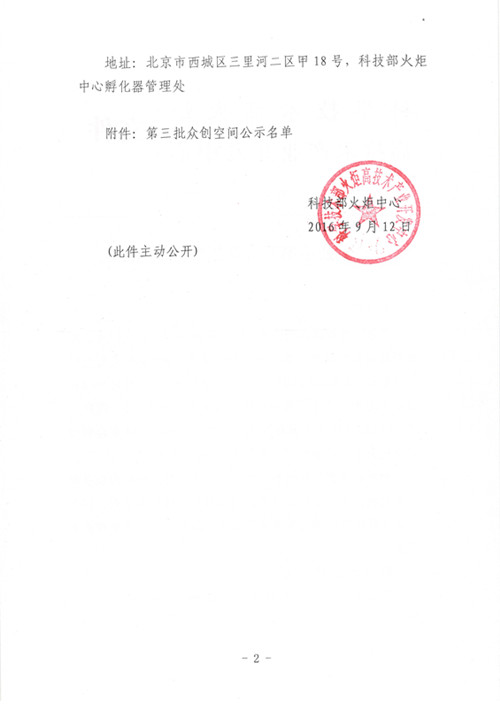 關于公示第三批眾創空間的通知