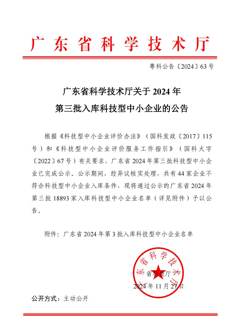 廣東省2024年第3批入庫科技型中小企業(yè)名單公告