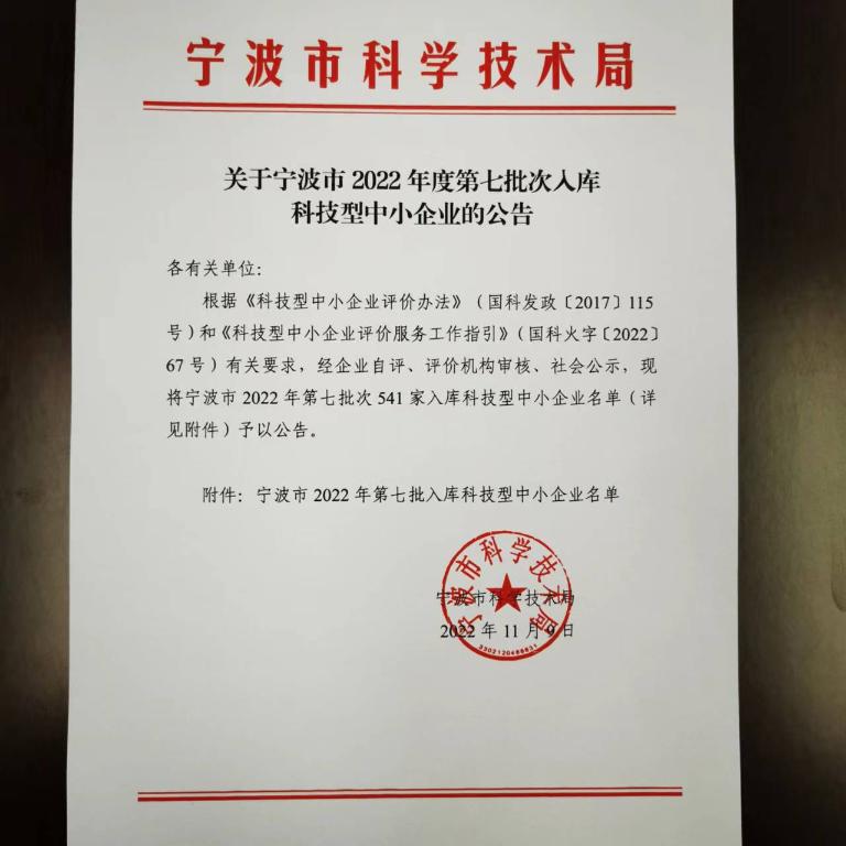 寧波市2022年第7批入庫科技型中小企業名單公告